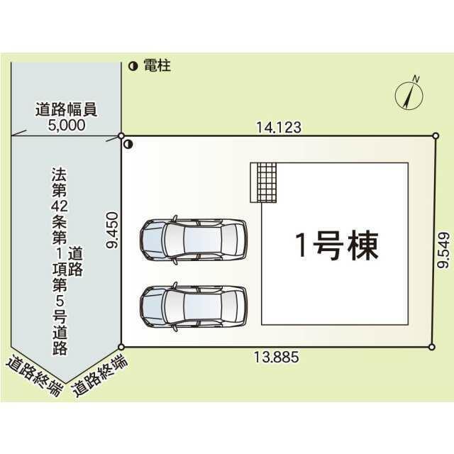 | 用途地域 | 1種低層 | 接道状況 | 西5.0m 私道 接面9.4m 位置指定あり |