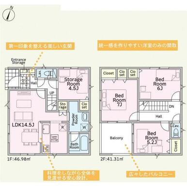 号棟番号:1号棟 2条区域 日影規制3h-2h/1.5m 建物面積に別途ルーフバルコニー約7.29平米有り |